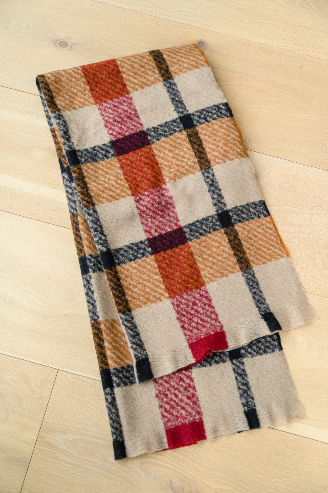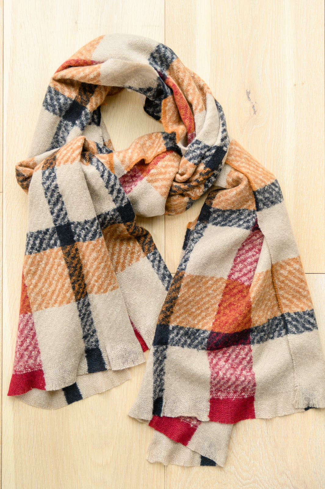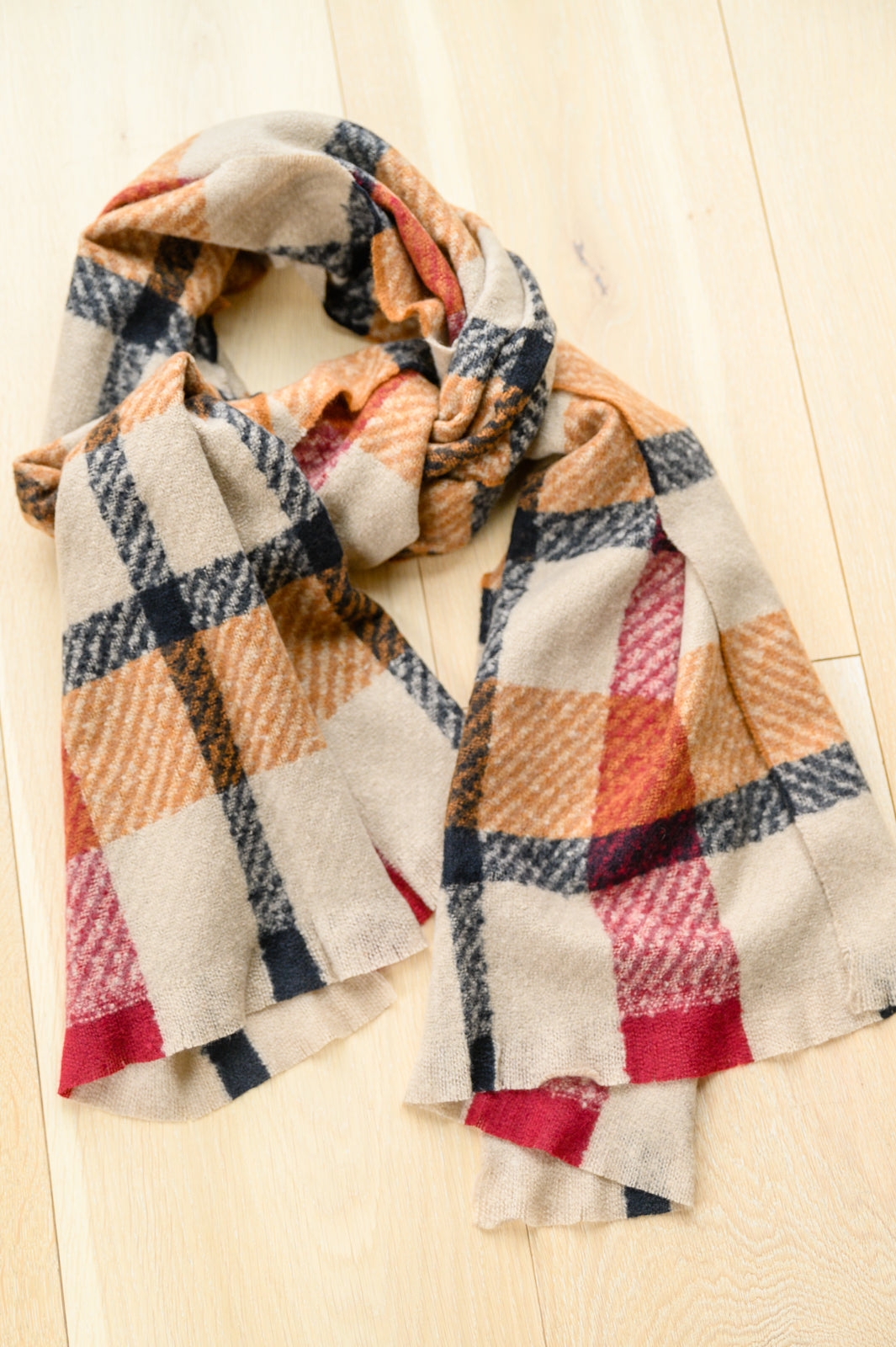 The Keep Me Company Plaid Scarf In Rust is here to keep you cozy and in style! Featuring a medium weight fabric with an orange and red plaid design, and a frayed hem. This is the perfect accessory whether you're headed to the pumpkin patch or running errands!