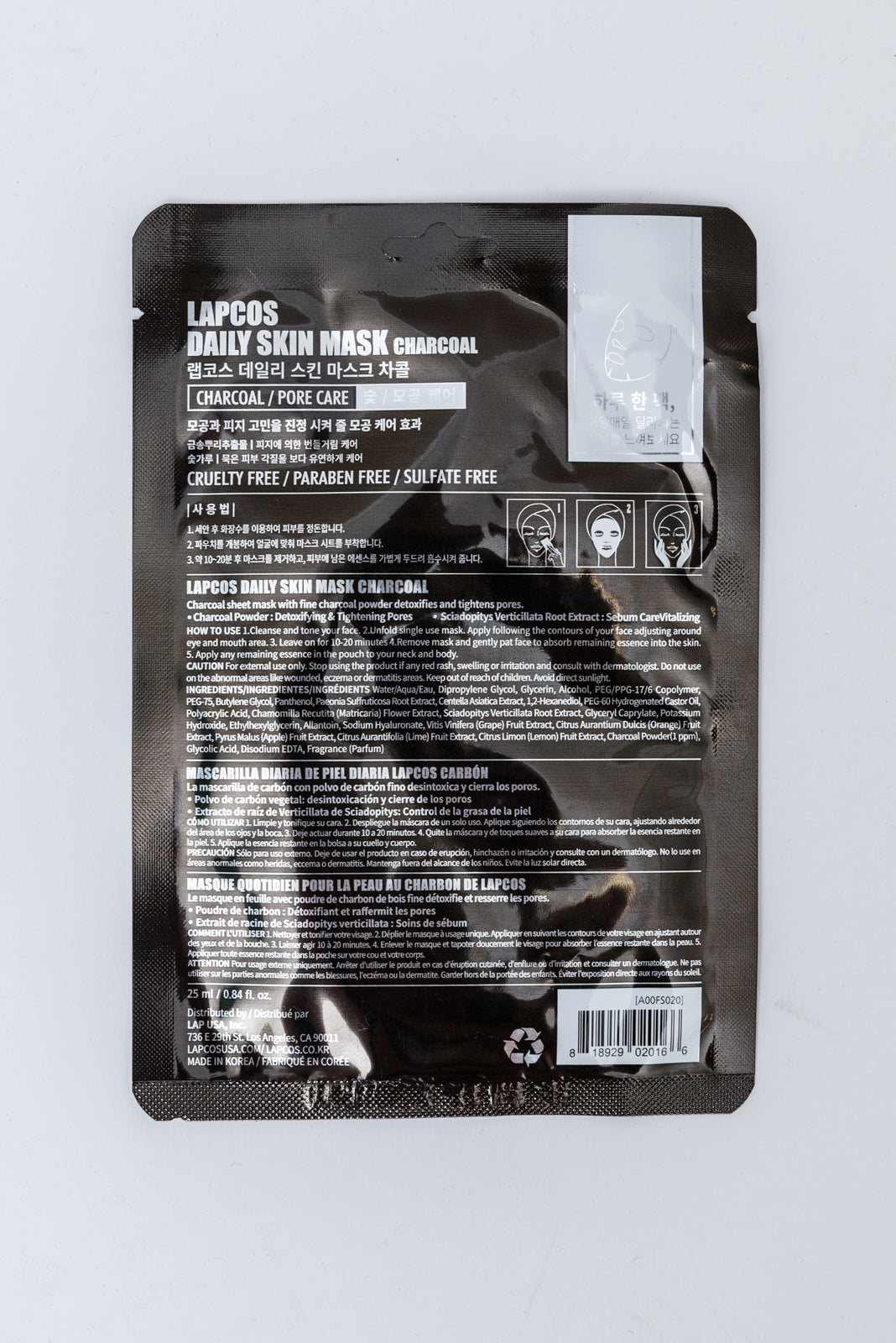 - Ingredients: Water, Dipropylene Glycol, Glycerin, Alcohol, PEG-75, PEG/PPG-17/6 Copolymer, 1,2-Hexanediol, Panthenol, PEG-60 Hydrogenated Castor Oil, Polyacrylic Acid, Allantoin, Ethylhexylglycerin, Potassium Hydroxide, Disodium EDTA, Fragrance(Parfum), Sodium Hyaluronate, Butylene Glycol, Centella Asiatica Extract, Chamomilla Recutita (Matricaria) Flower Extract, Glyceryl Caprylate, Charcoal Powder, Glycolic Acid, Citrus Aurantifolia (Lime) Fruit Extract, Citrus Aurantium Dulcis (Orange) Fruit Extract, Citrus Limon (Lemon) Fruit Extract, Paeonia Suffruticosa Root Extract, Pyrus Malus (Apple) Fruit Extract, itis Vinifera (Grape) Fruit Extract, Sciadopitys Verticillata Root Extract, Phenoxyethanol