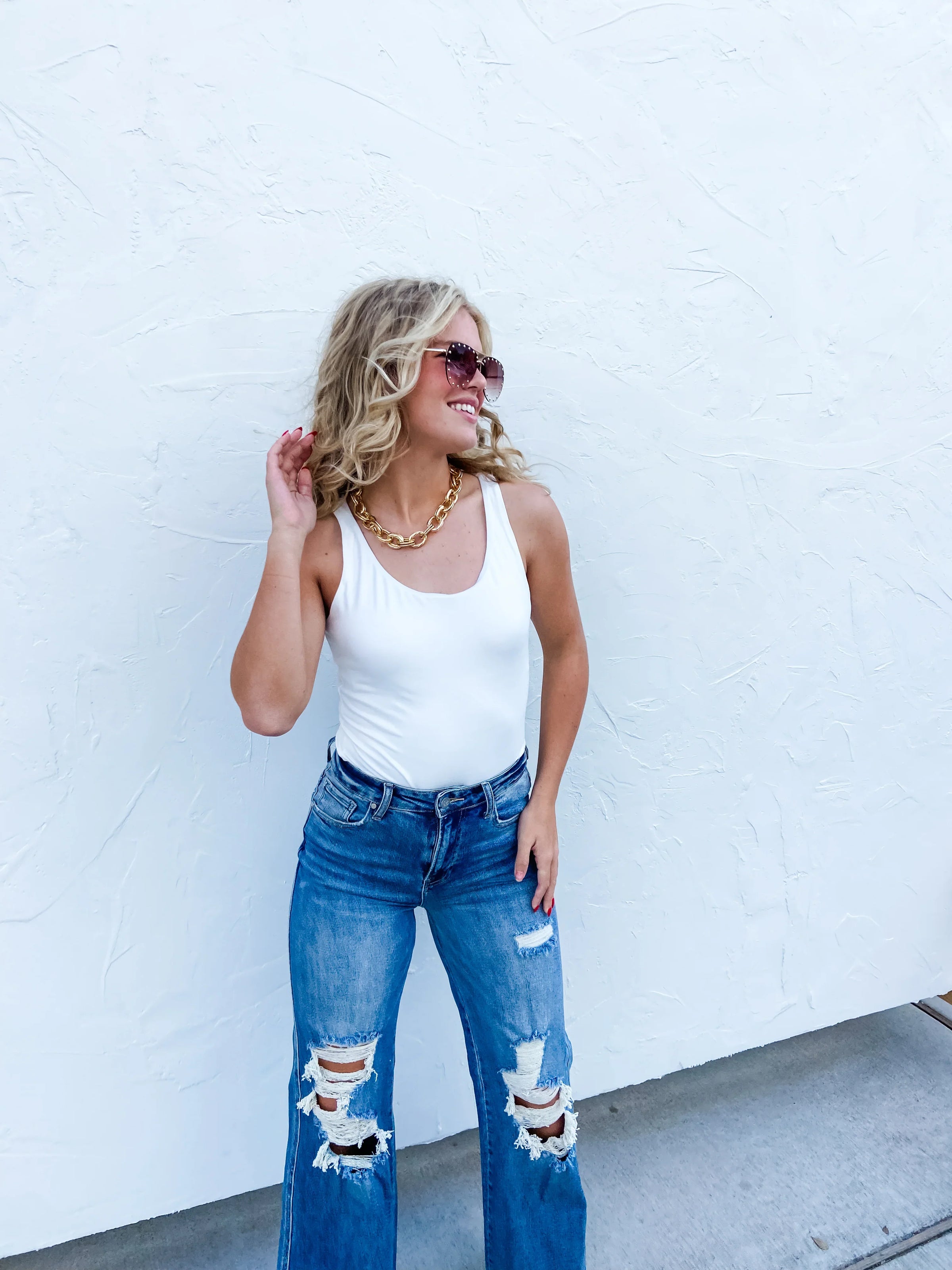 PREPARE TO FALL IN LOVE! These distressed high rise "dad jeans" are here and they are perfection! The stretch is amazing! Made with premium quality denim with heavy distressing on the knees.
